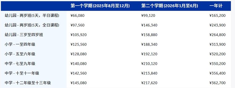 所有小学部和中学部新生首次注册时须缴纳15,000元人民币的不可退还的校园建设费。该项强制性费用专用于校园基础设施的建设和升级支出。