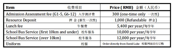 申请及注册费为人民币 2500 元,不退还不可转让,跟随申请表格或申请系统交纳,学生/家庭面试在费用交纳后安排。