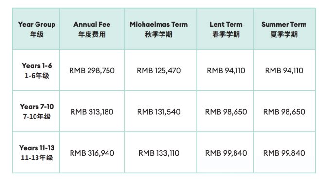 上述费用包含日常学费、教科书和图书馆书籍的使用、统考费用、基本文具费和适合各年级组的普通教材费;还包括运 动、体育、参加必修研学和教学参观、参与大多数辅助课程教学活动(少数活动收取名义上的费用)的费用。学费不包 含在校餐费、校服费和交通费。