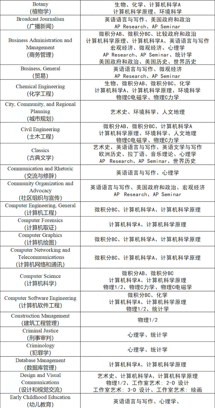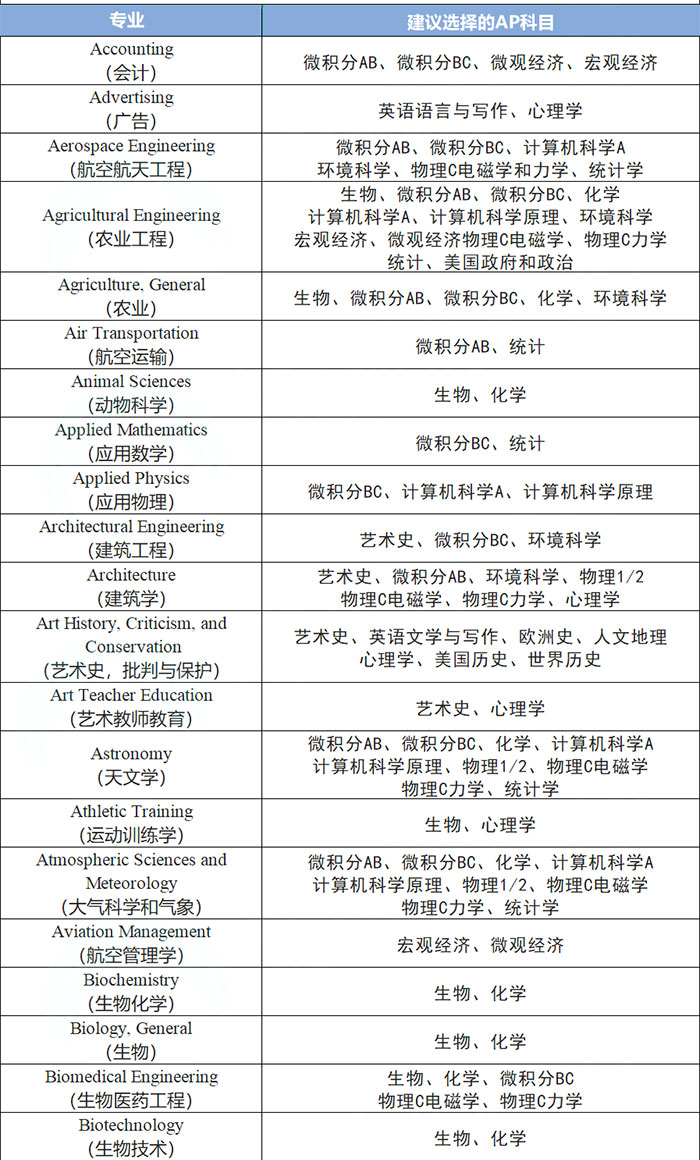 AP课程有那么多科目,我们该如何选择?美国大学更喜欢文理成绩均衡的学生,所以我们先从专业来选AP科研,下面是CB官方选课建议,供大家了解。