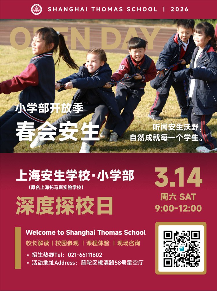 【讲座主题】:上海安生3月校园开放日通知,和择校焦虑说再见!