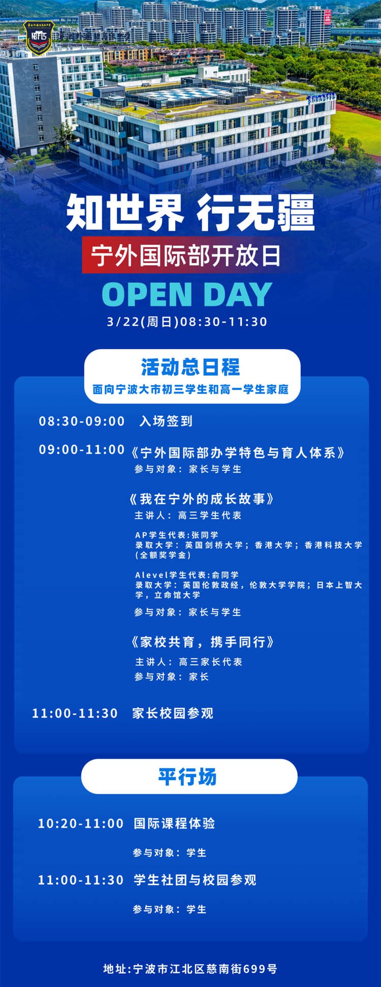 【讲座主题】:来自剑桥学长、伦敦政经学姐的邀请 | 3月22日宁波外国语国际部开放日等你来