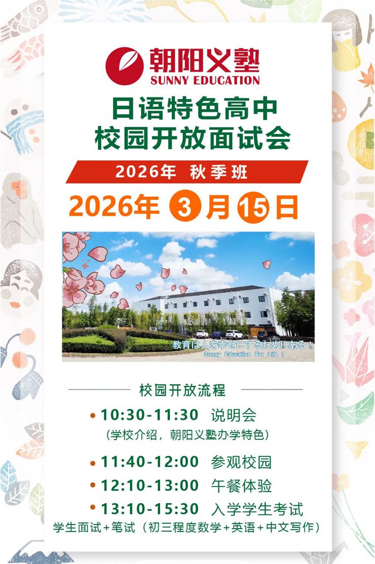 本文标题:上海朝阳义塾2026年3月15日校园开放日-入学考试通知