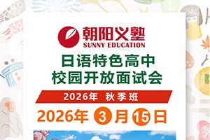朝阳义塾定于3月15日举行校园开放日活动,欢迎各位对日本留学有意向的家长和同学,到校参观访问。我们将以饱满的热情和专业的服务为您解答日本留学方面的疑问!