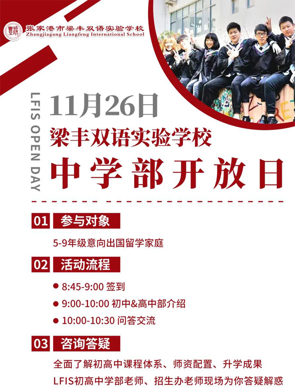 详情介绍:张家港市梁丰双语实验学校11月26日中学部开放日