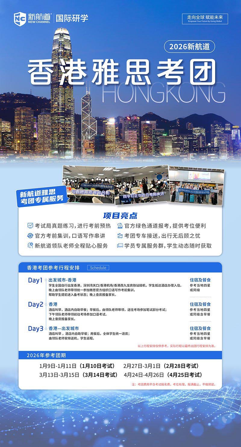 本文标题:新航道2026年4月香港雅思考团:一站式解决赴考难题。