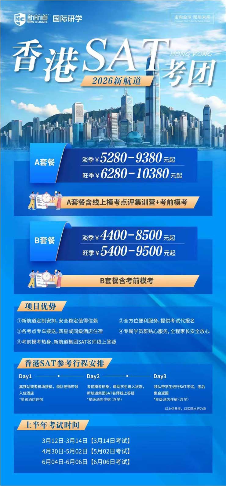 本文标题:新航道2026年6月香港SAT考团报名启动