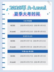 2026年准备参加A Level大考的同学注意啦!2026年三大考试局的考试时间出来了!如果你也想在2026年夏天参加考试,可以了解一下哦!