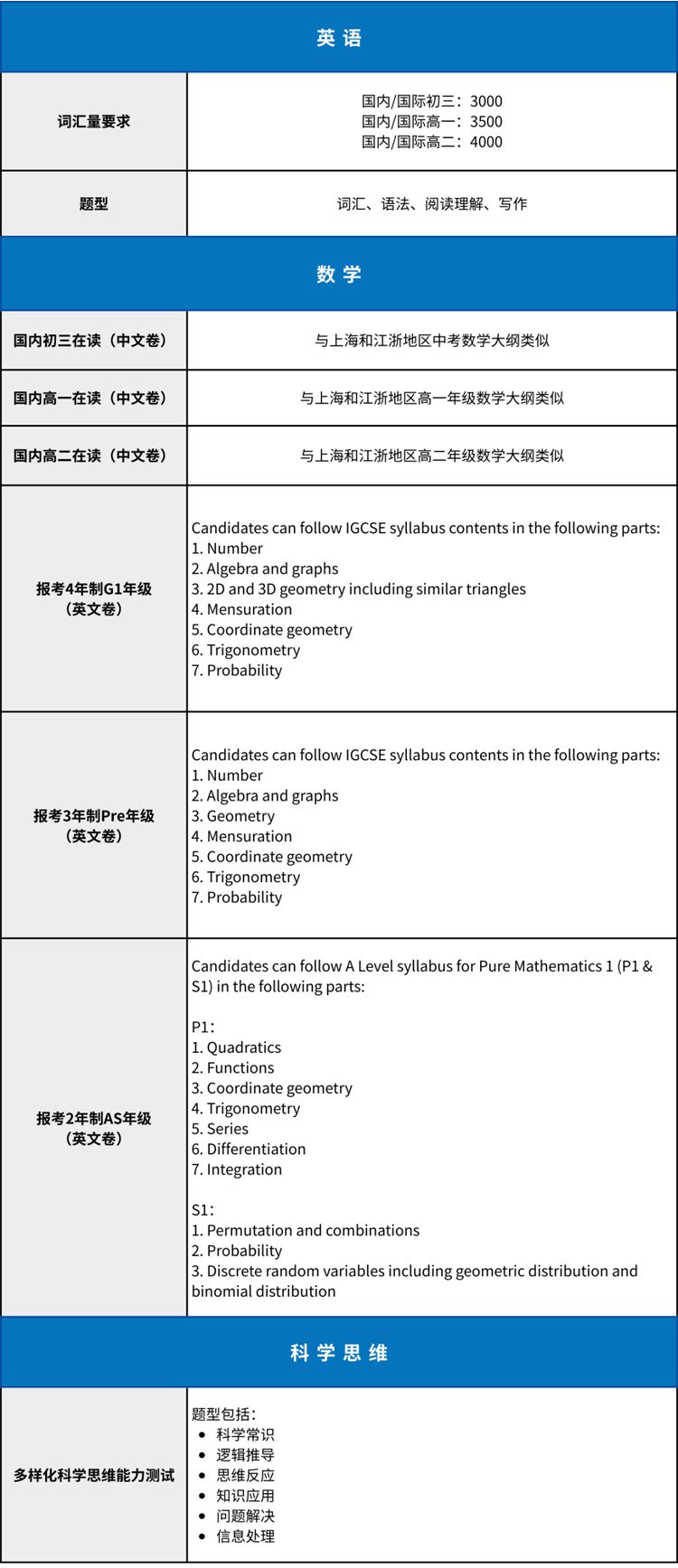 注意:想要报考二年制(AS或IBDP年级)的考生请选择3月场,4月场不提供二年制报考。