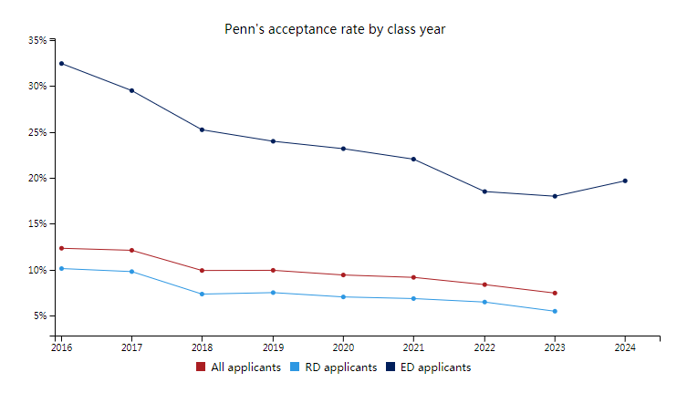 官方表示,今年是宾大十年来首次录取率呈现增长趋势,不过这并不意味着宾大的申请门槛降低,而是今年总的申请数减少了。