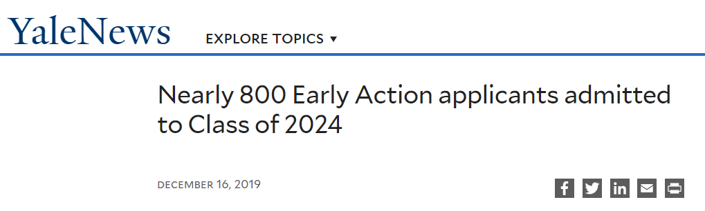 今年耶鲁大学共收到5777份EA申请,其中796名学生被录取,录取率为13.7%。本科招生和经济援助主任表示,今年的申请者中,56%的学生被defer,放入RD中再做考虑;29%的学生直接被拒。